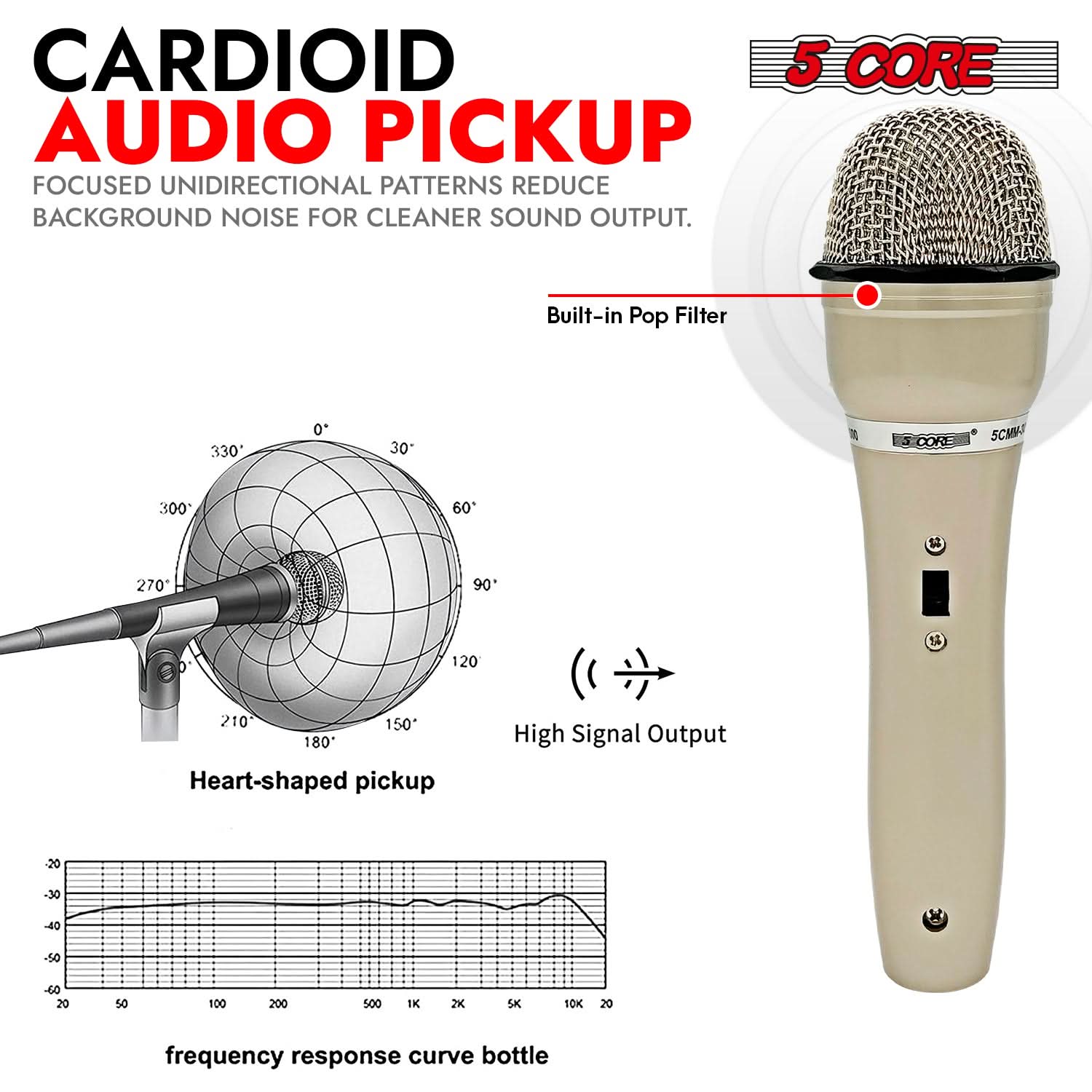5Core XLR Microphone Dynamic Mic Karaoke Singing Studio Mics Handheld Microfono